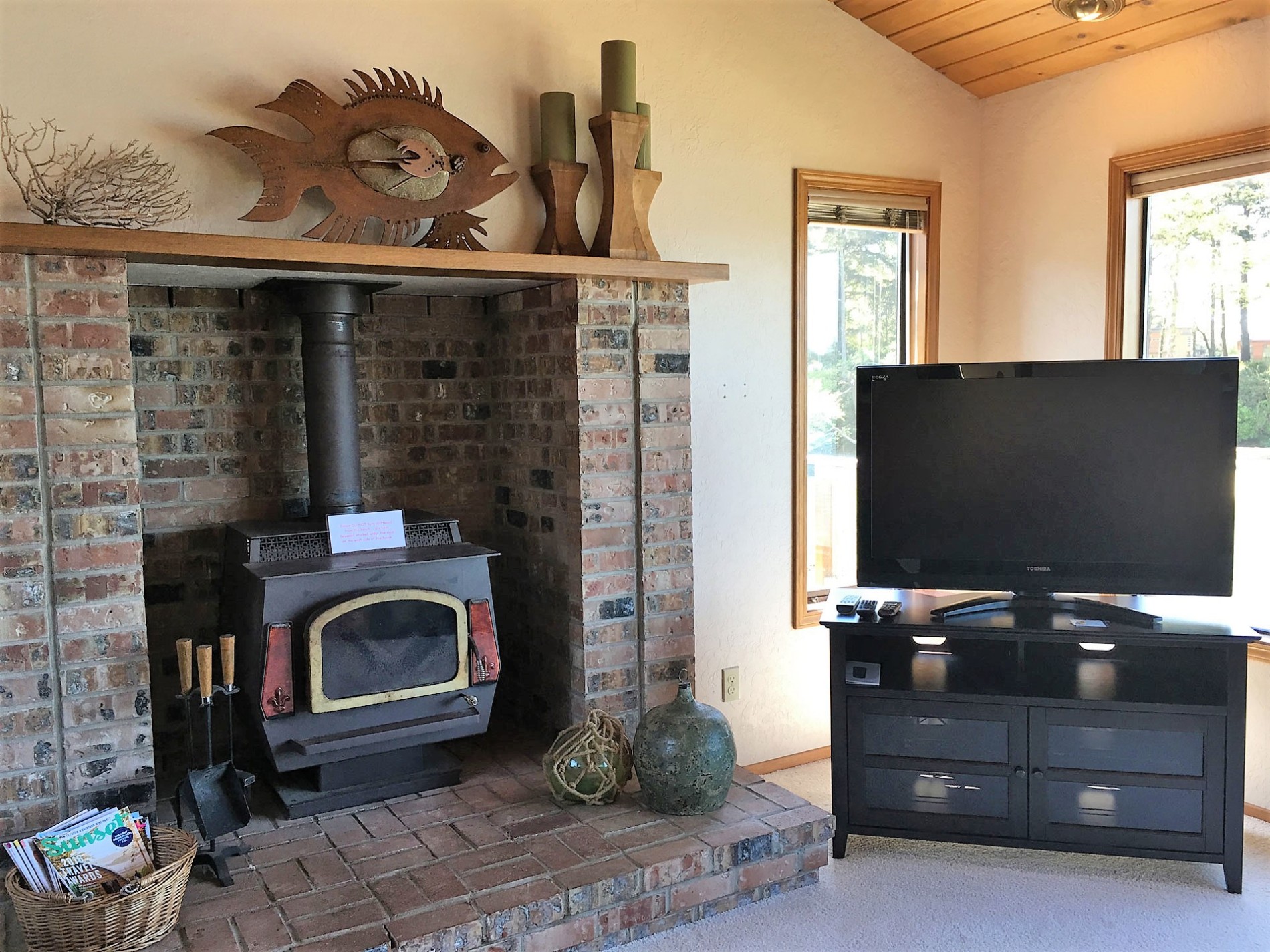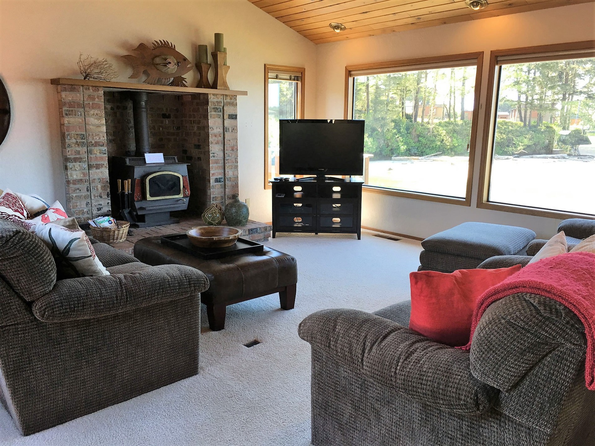 - Family room - Comfortable Sofa, Love Seat and la large Easy Chair with Ottoman. 65" Flatscreen with SatelliteTV- Roku for streaming with your own accounts. Wood Stove -Firewood provided